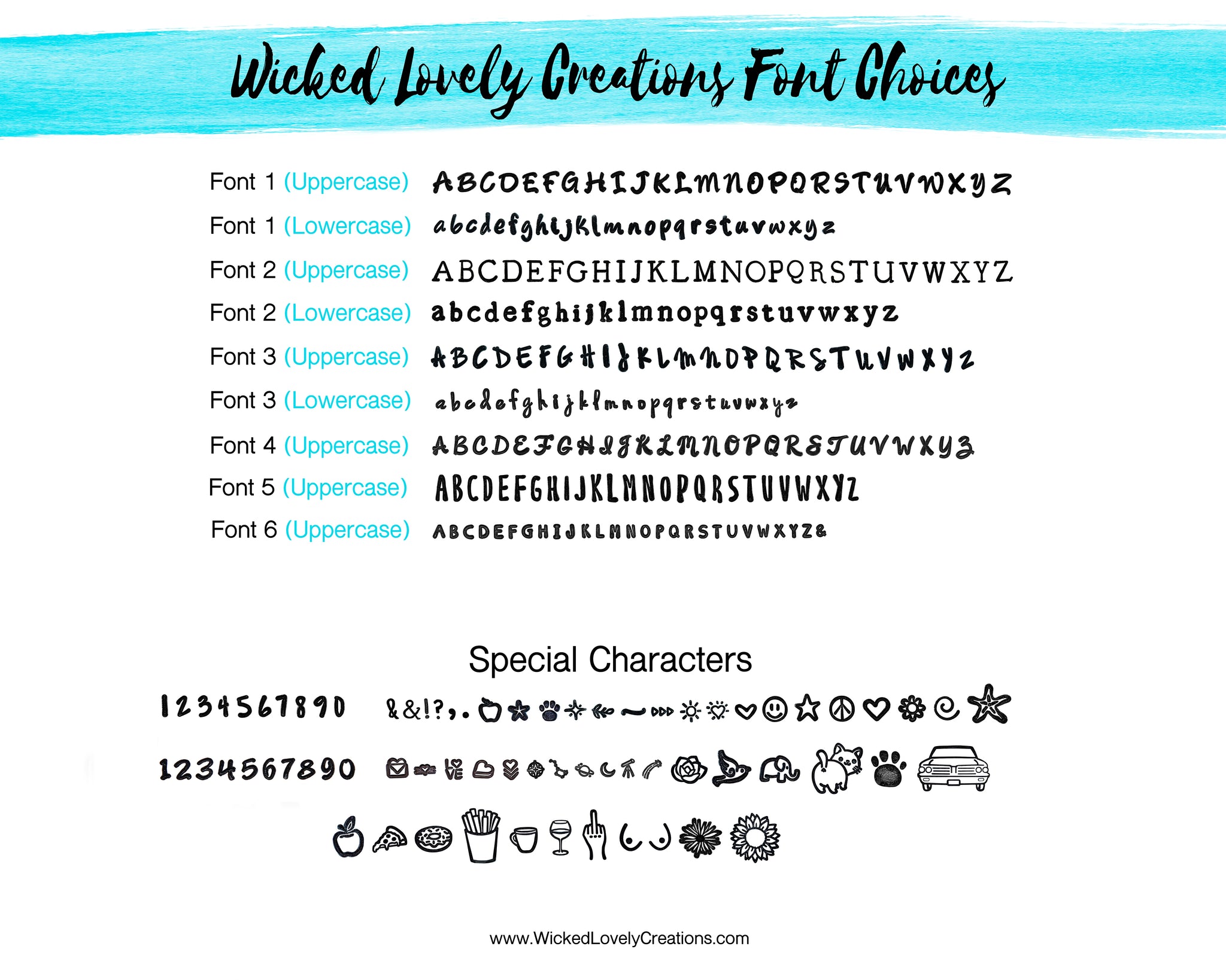 ♥Please let me know what text and which font(s) you’d like in a note at the checkout.